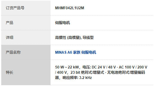 MHMF042L1U2M | MINAS A6 家族 伺服电机-广东卓姆龙科技有限公司