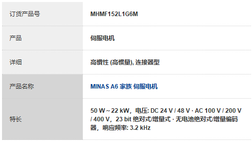 MHMF152L1G6M | MINAS A6 家族 伺服电机-广东卓姆龙科技有限公司