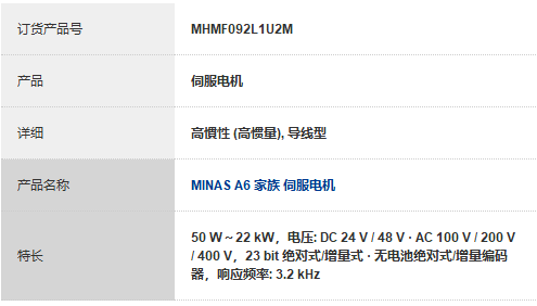 MHMF092L1U2M | MINAS A6 家族 伺服电机-广东卓姆龙科技有限公司