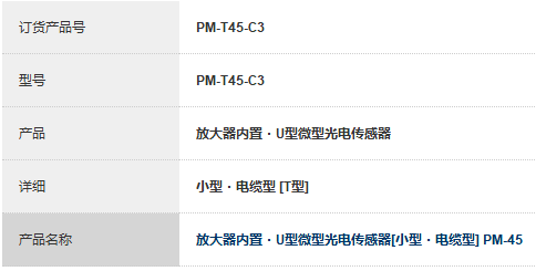 PM-T45-C3 | 放大器内置・U型微型光电传感器[小型・电缆型] PM-45-广东卓姆龙科技有限公司